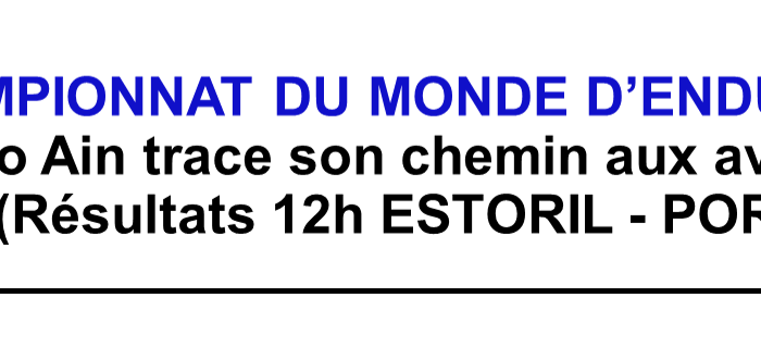 CHAMPIONNAT DU MONDE D'ENDURANCE 2023 24 HEURES MOTOS (LE MANS) Après les pré-tests prometteurs à Nogaro, et une bonne semaine de préparation sur le circuit Bugatti, le team MOTO AIN #96 confirme son ancrage [...]